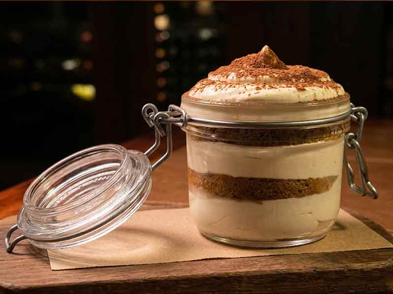 O Tiramisú Clássico (R$ 46) é onde O Forno da Pino se posiciona com mais clareza. Barletti utiliza biscoitos produzidos internamente que chegam à mesa crocantes, uma decisão que transforma a textura da sobremesa inteira: o contraste entre o biscoito que ainda resiste e o creme de mascarpone etéreo é o que separa esta versão das que apenas executam a receita. O café está na medida e o cacau fecha com amargor pontual. É a régua pela qual se mede um restaurante italiano, e aqui a régua não mente.
